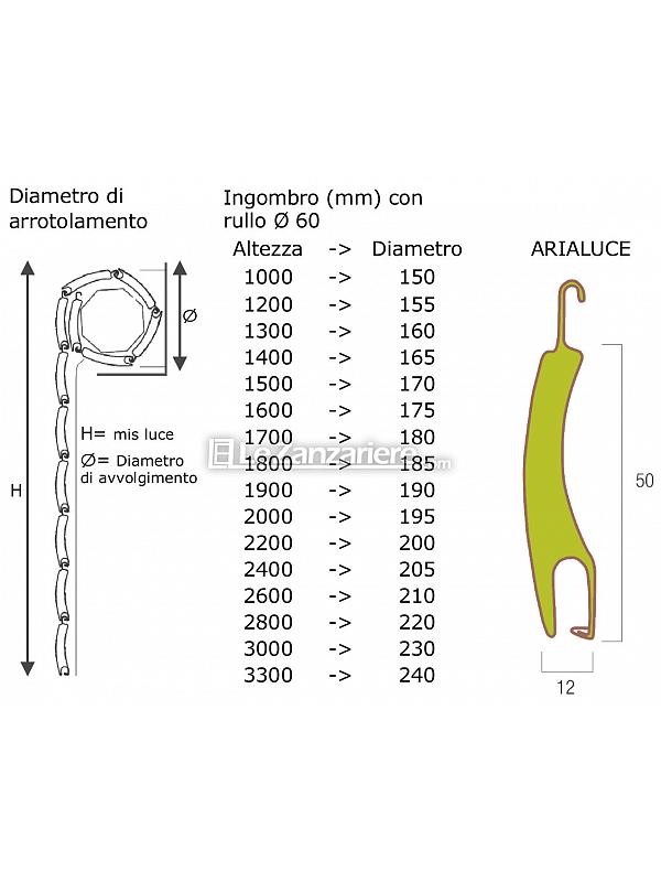 La dimensione del foro (altezza 5,5 mm, larghezza 180 mm), nettamente superiore a quello tradizionale (altezza 2 mm, larghezza 17 mm), favorisce, a tapparella abbassata, l’agevole riciclo dell’aria all’interno dell’abitazione e, nel contempo, l’entrata della luce solare.